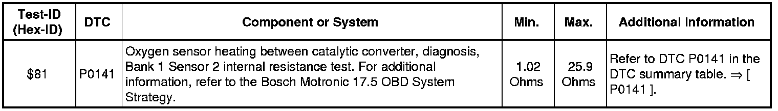 Diagnostic Mode 06 makes it possible to retrieve test results for special components and systems which are continuously or not continuously monitored. If the diagnosis of a system is complete, the diagnostic result and the corresponding thresholds are saved and displayed in mode 06. This data remains saved (even with the ignition off) until either new diagnostic results become available or the DTC memory is erased.