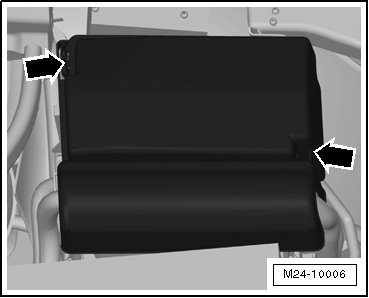 - Remove the E-box cover - arrows - inside the engine compartment.