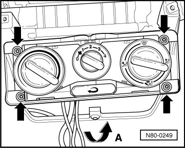 - Lift out controls with cables from instrument panel in direction of - arrow A -.