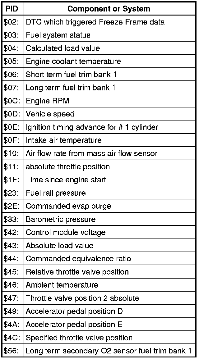Depending on scan tool and protocol used, the information in diagnostic mode 02 may be referred to by different names such as Test-ID (TID), Hex-ID, Component-ID (CID), or On-Board Diagnostic Monitor Identifier (OBDMID).