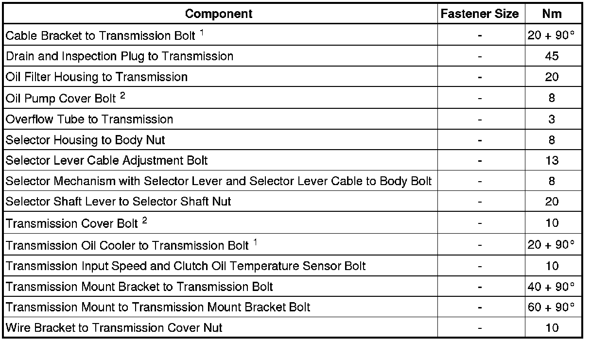 Mechatronic Unit Bolt Tightening Sequence and Specification