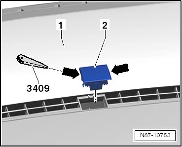 - Unclip the sunlight photo sensor - 2 - with the (3409) at the displayed positions - arrows - from the instrument panel - 1 -.