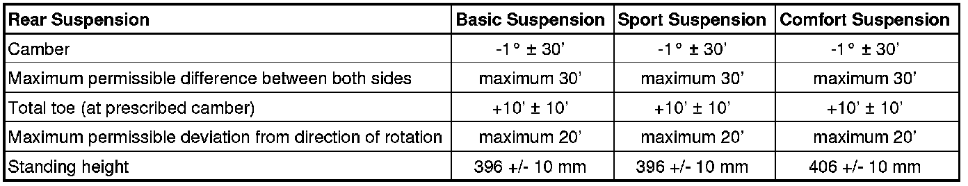 Wheel Alignment Specified Values, Vehicles with Multi-Link Rear Suspension