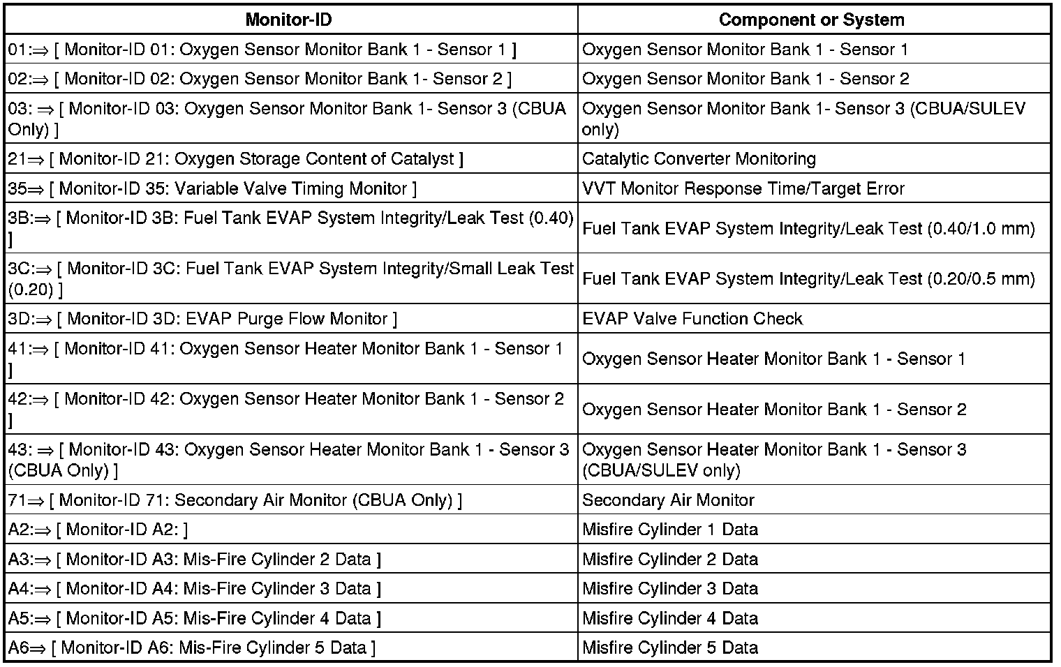 Monitor-ID 43: Oxygen Sensor Heater Monitor Bank 1 - Sensor 3 (CBUA Only)