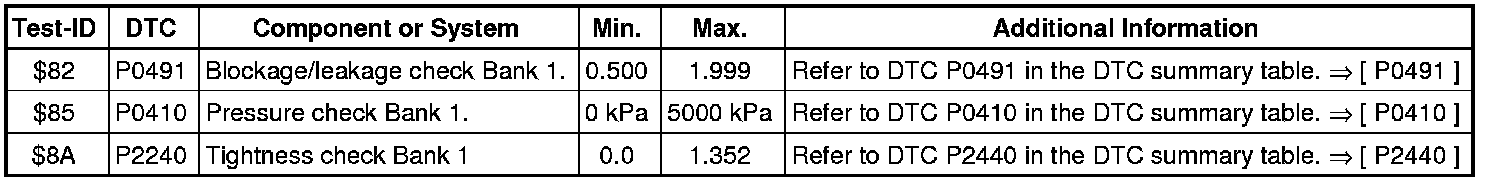 - If any of components or systems fail to meet the specified values. Refer to Diagnostic "Mode 03: Interrogating Fault Memory" to check for stored DTC's or the corresponding diagnostic repair procedure => [ Diagnostic Mode 03 - Read DTC Memory ]. Diagnostic Mode 03 - Read DTC Memory