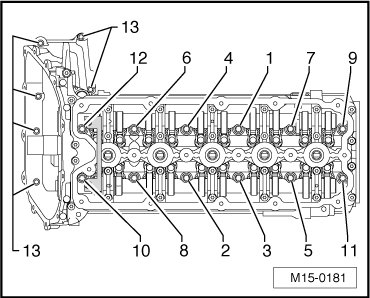 Then, tighten the bolts - 13 - to 10 Nm.