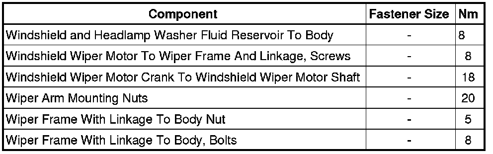 Wiper and Washer Systems: Specifications