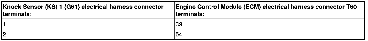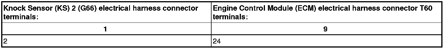 - Disconnect Knock Sensor (KS) 1 (G61) electrical harness connector or Knock Sensor (KS) 2 (G66) electrical harness connector.