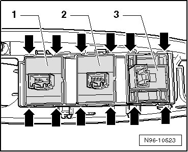 • When removing and installing components in a visible area (switches, covers, trims, etc.), use commercially available adhesive tape to mask off the areas at which a prying tool ( (VAS 3409) , screwdriver) will be positioned.