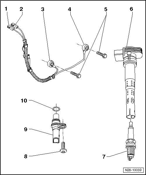 6 Ignition Coil with Power Output Stage (N70, N127, N291, N292, N323)