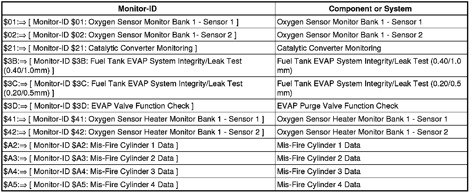 • Depending on the scan tool and protocol used, the information displayed in diagnostic mode 06 may be referred to by different names such as Test-ID (TID), Hex-ID, Component-ID (CID), or On-Board Diagnostic Monitor Identifier (OBDMID).