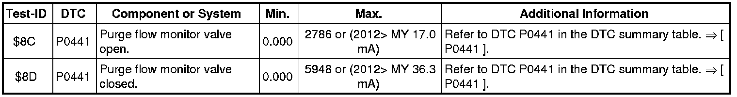 - If any of components or systems fail to meet the specified values. Refer to Diagnostic "Mode 03: Interrogating Fault Memory" to check for stored DTC's or the corresponding diagnostic repair procedure => [ Diagnostic Mode 03 - Read DTC Memory ]. Diagnostic Mode 03 - Read DTC Memory