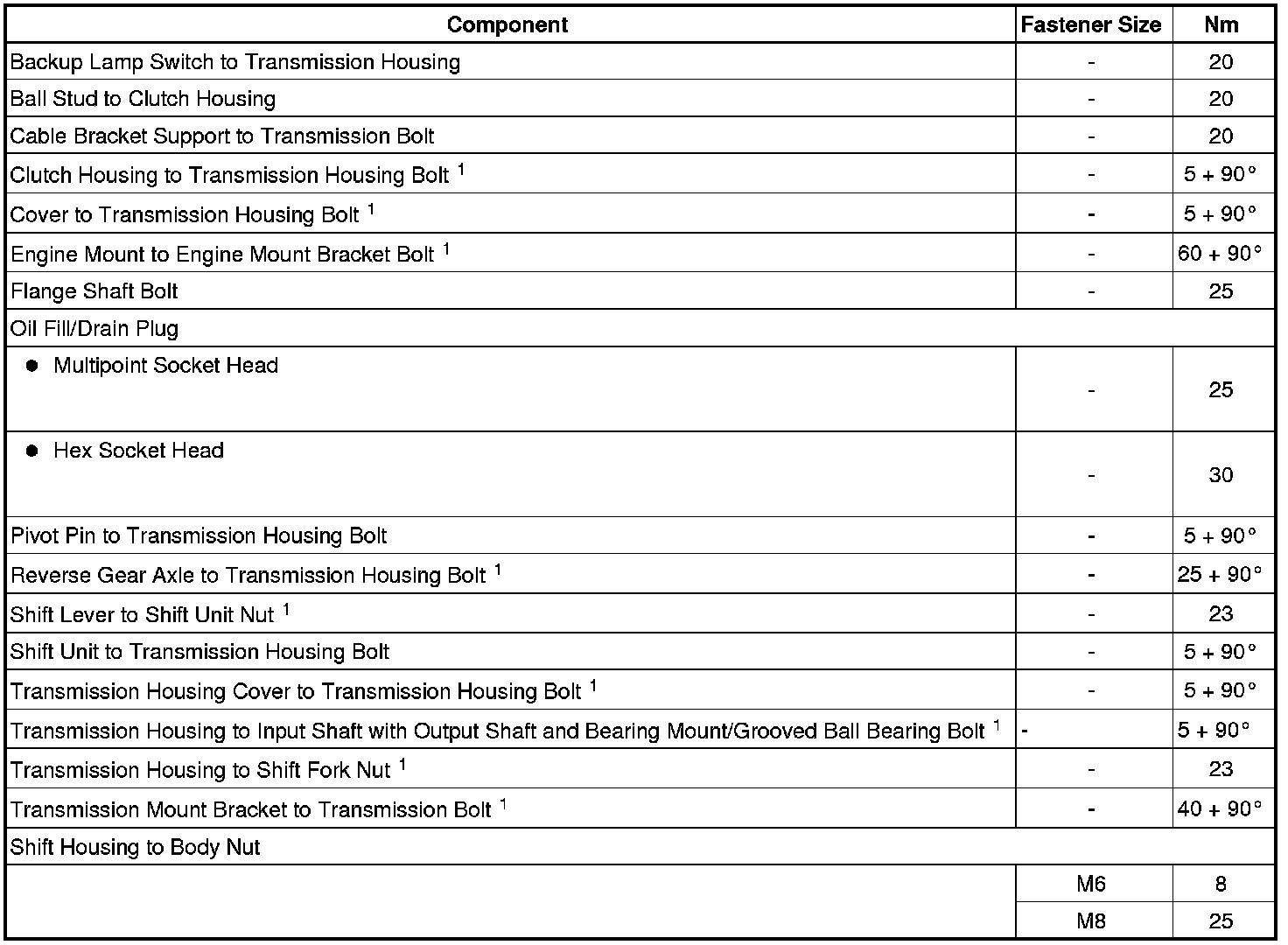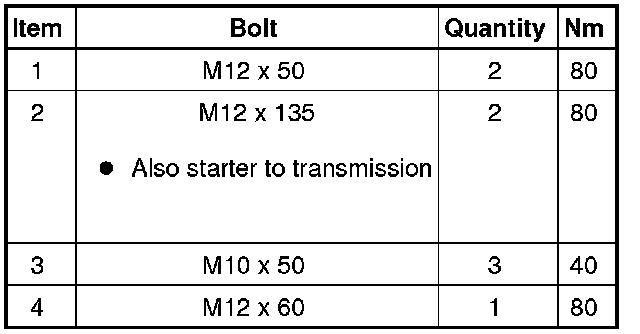Transmission to Engine Bolt Tightening Sequence and Specification