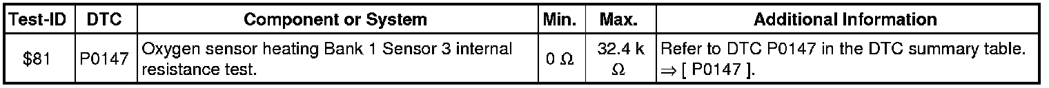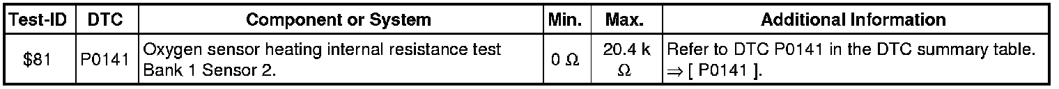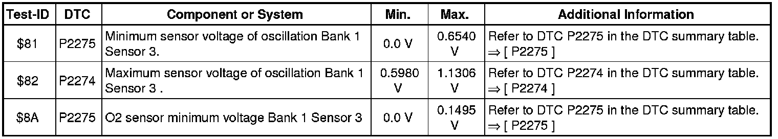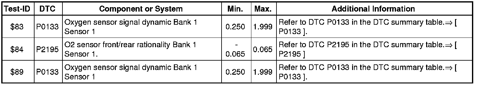 - If any of components or systems fail to meet the specified values. Refer to Diagnostic "Mode 03: Interrogating Fault Memory" to check for stored DTC's or the corresponding diagnostic repair procedure => [ Diagnostic Mode 03 - Read DTC Memory ].