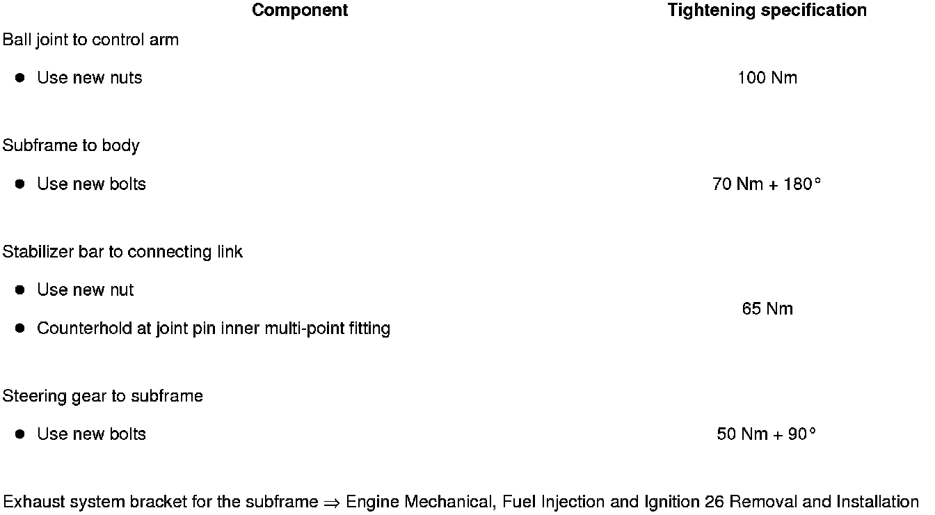 - Remove exhaust system bracket from subframe- arrows -.