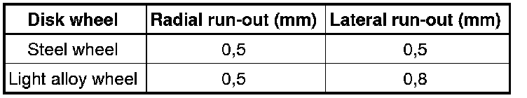 Specifications for radial and lateral run-out on disc wheel