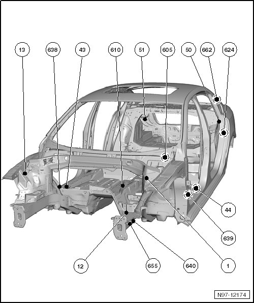 (13) - Ground point inside the engine compartment on the right side