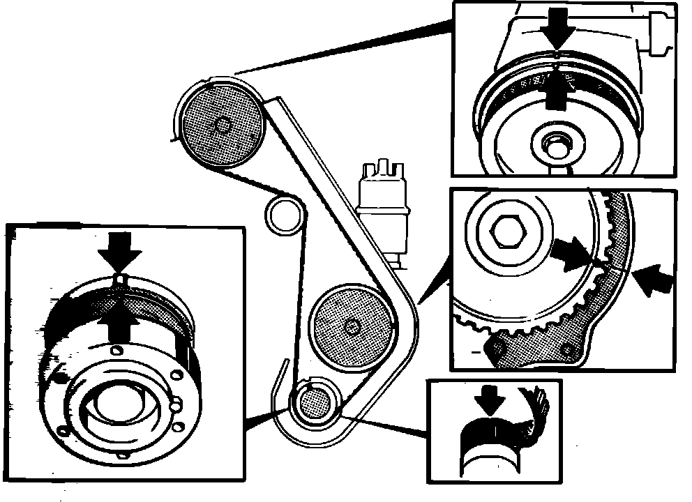 CAUTION! Do not rotate crankshaft or camshaft with timing belt removed. Pistons and/or valve damage can occur.