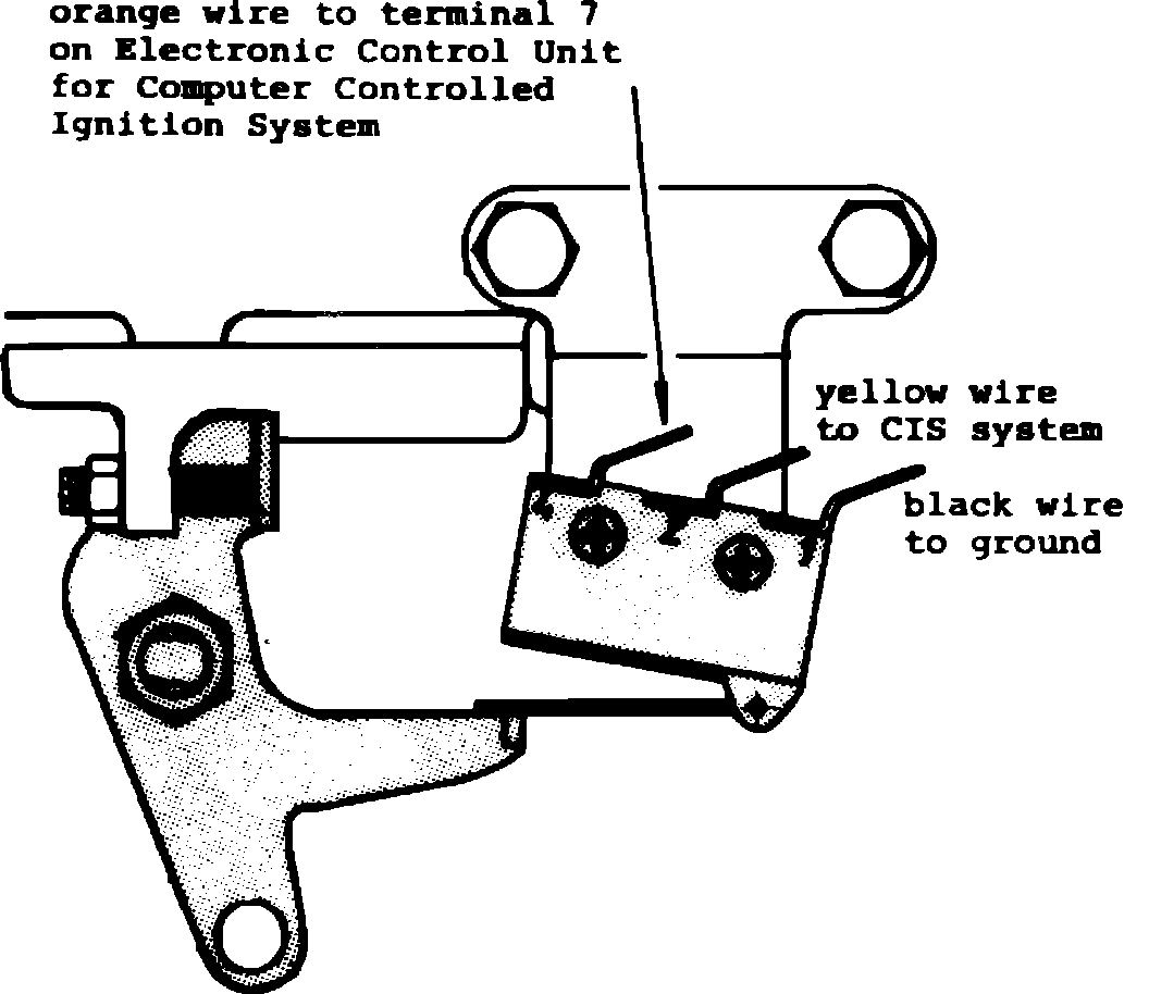The throttle actuates a microswitch which controls a circuit in the electronic control unit when the throttle reaches idle position.