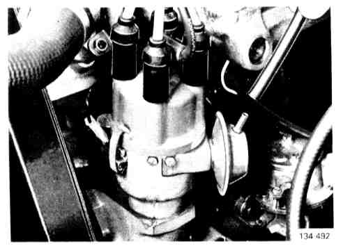 IMPORTANT: To prevent retaining springs from damaging rotor do not crank engine when distributor cap is off.