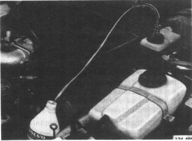 - Exchange the reservoir cap for a modified cap with a tube and nipple. Submerge the free end of the tube in a small quantity of new brake fluid.