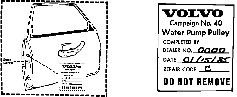 In the case of Recall 40 (Water Pump Pulley replacement), the sticker may be the only means of identifying a completed vehicle if, as in some cases, the green market has been placed on the front of the pulley where the fan is attached, rather than on the pulley top.