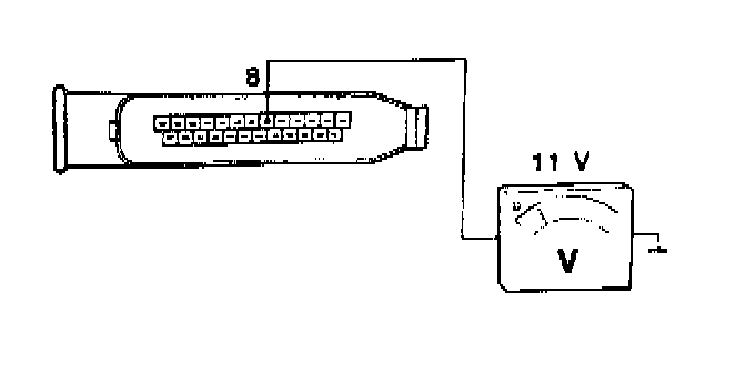 Switch on ignition. Voltmeter should indicate approx. 11 Volts (depending on battery charge).