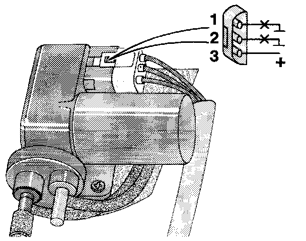 Connect test lamp between ground and terminal 1 in the connector. The test lamp should light up.