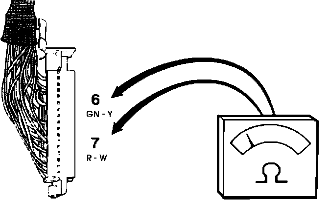6. Check mass air flow sensor by connecting an ohm meter between ECU connector pin 6 and 7.