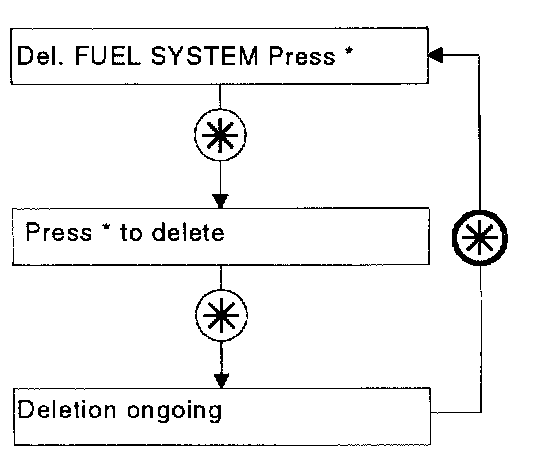 Look for the text "Del. FUEL SYSTEM Press * "in accordance with diagram X or "Del IGNITION SYSTEM Press * " in accordance with diagram Y.