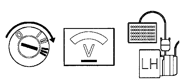 The voltmeter should read approx. 0.8 V. when the starter motor is operating or the engine is running.