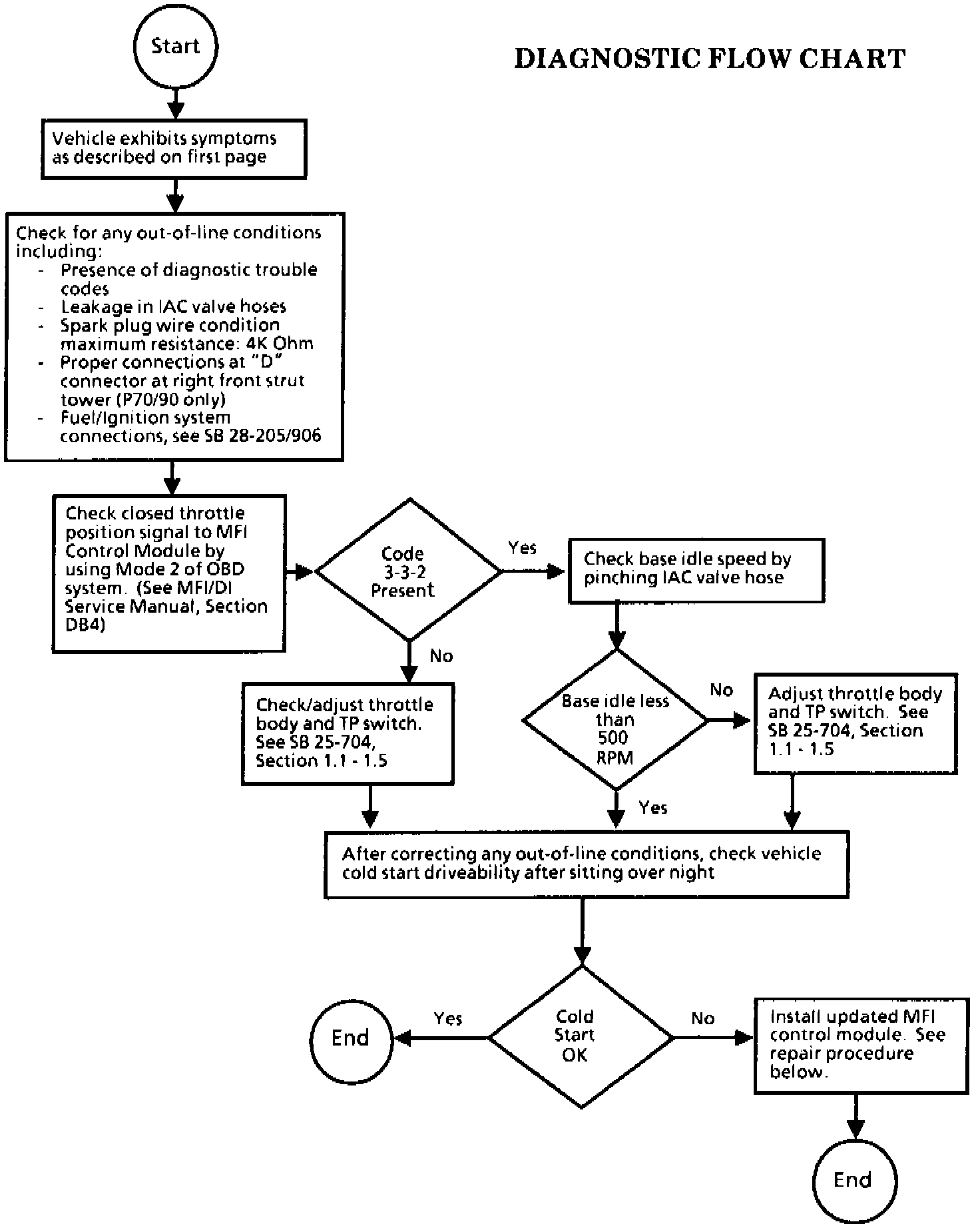 Follow the diagnostic flow chart. Any pre-existing out-of-line condition will only aggravate the above described conditions and should be corrected before proceeding further. Out-or-line conditions Include poor compression, incorrect valve clearance, intake valve deposits, injector deposits, etc.