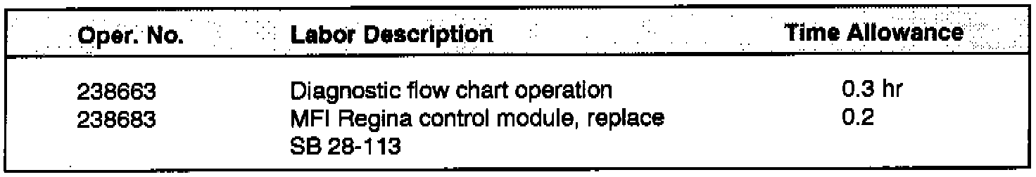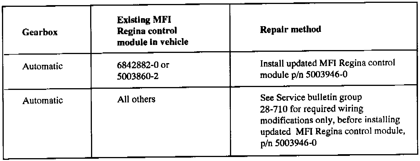 If a confirmed customer complaint is diagnosed after any out-of-line conditions have been corrected, an updated MFI Regina Control Module is available for vehicles equipped with the Regina/Rex engine management system. See chart.