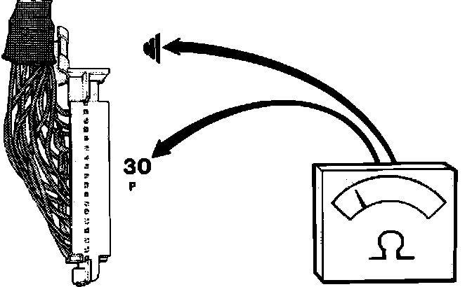7. Connect an ohmmeter between ECU connector pins 30 and ground.