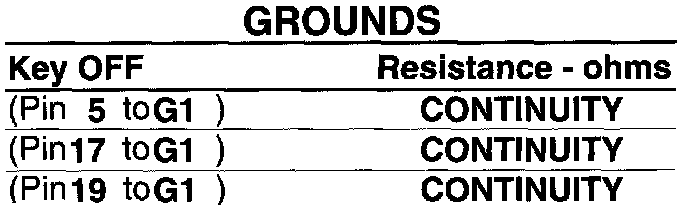 CAUTION: WHEN MEASURING OHMS DISCONNECT THE ECU FROM THE HARNESS PLUG AND NEVER TURN THE IGNITION KEY ON. IT IS P05SIBLE THAT FAILURE TO FOLLOW THESE STEPS WILL RESULT IN DAMAGE TO THE ECU.
