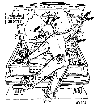 Dangerous voltage levels occur in all parts of the ignition system, including connectors and similar fittings.
