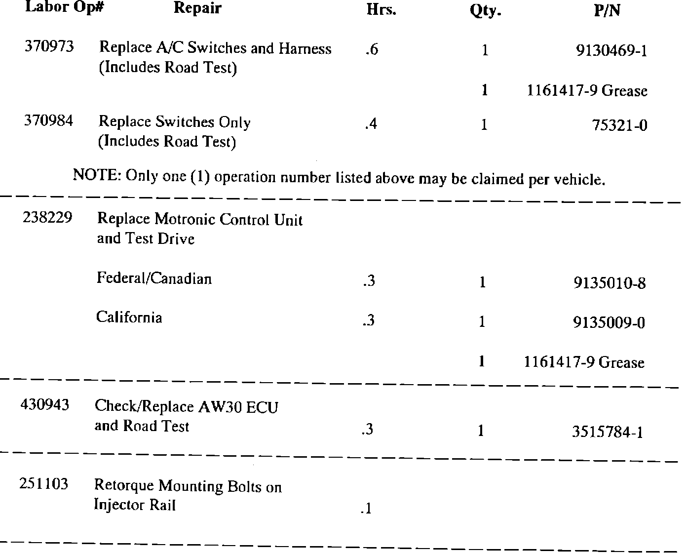 ^ Operation Number 370973 or 370984 A/C Switch (Harness) is to be listed as the main operation number and Kit P/N 9130469-1 listed as the failed part number.