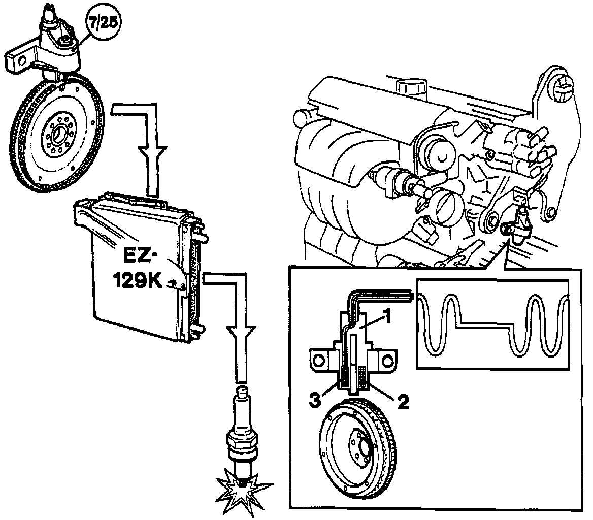 A voltage is induced in the coil as each hole passes the sensor and the resultant signals are used by the ICM to compute the speed and position of the crankshaft.