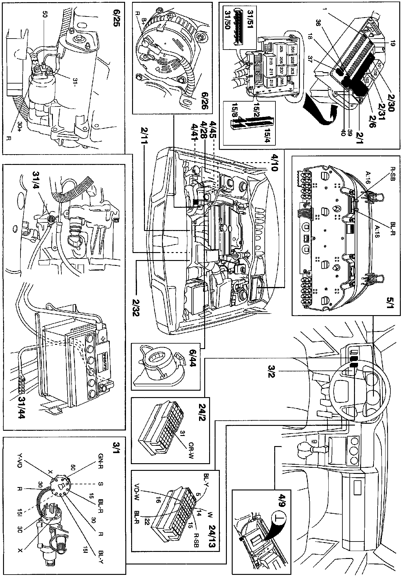 31/44 Ground point, engine compartment (ground connection battery - body)