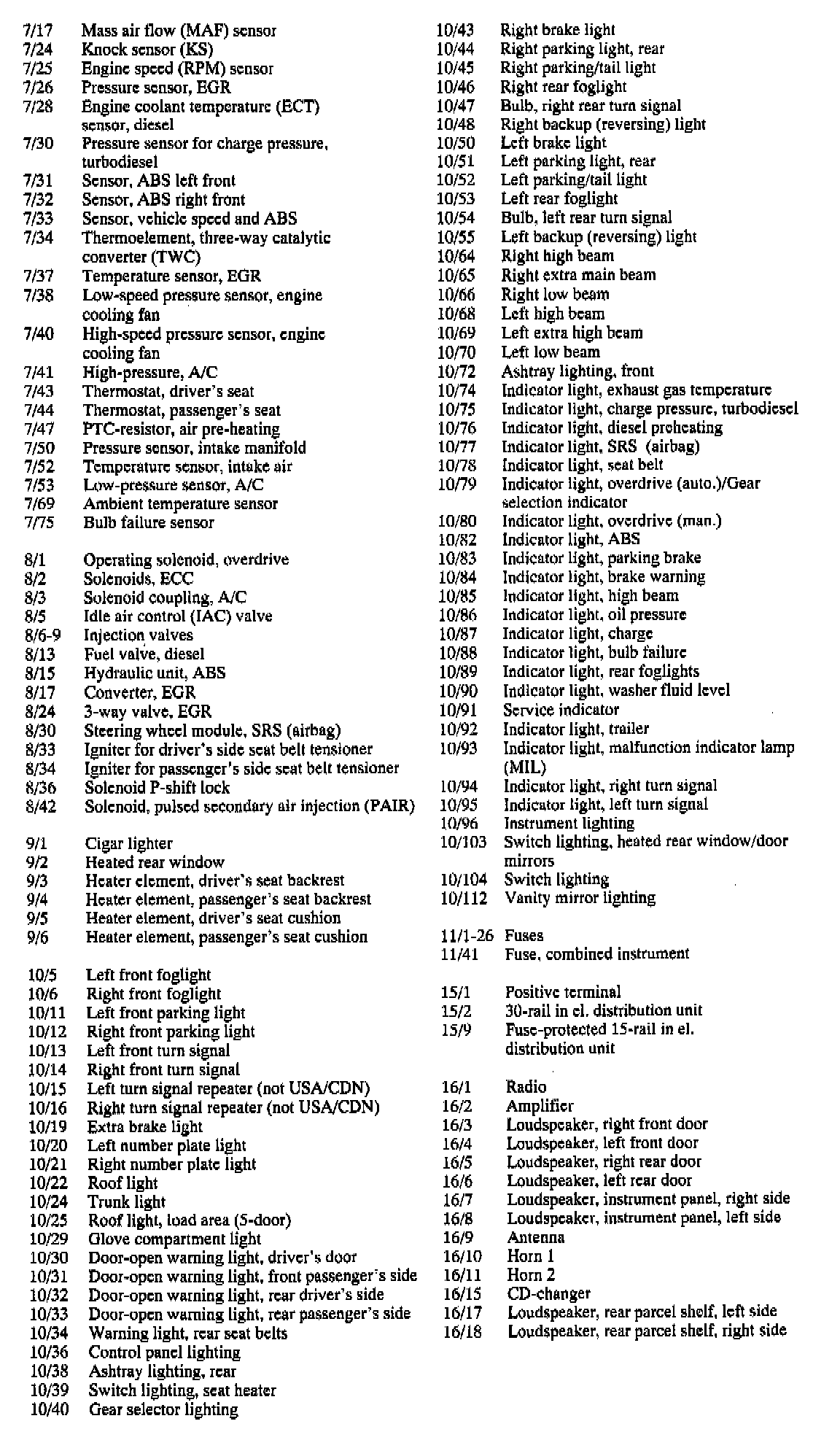 Component Index And Identification: