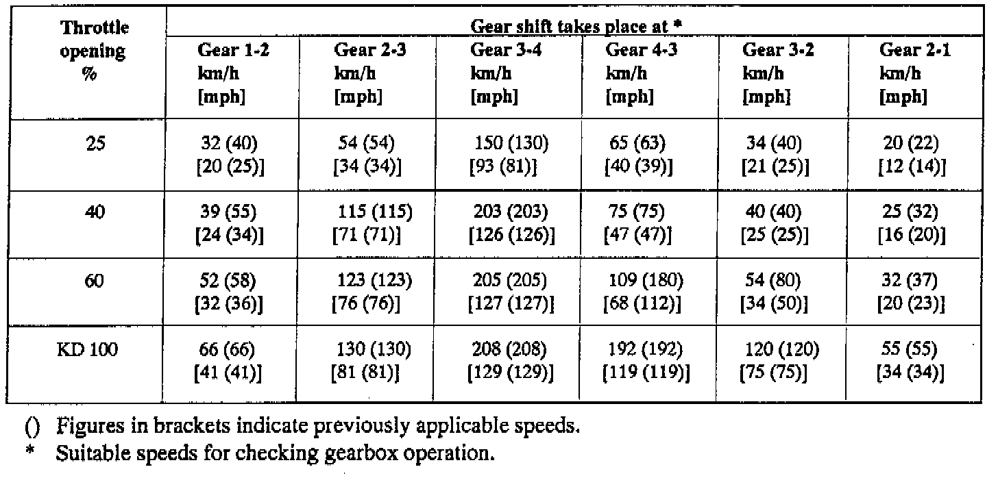 From March 1993, a new control module with modified shift characteristics was introduced in production from these chassis nos: