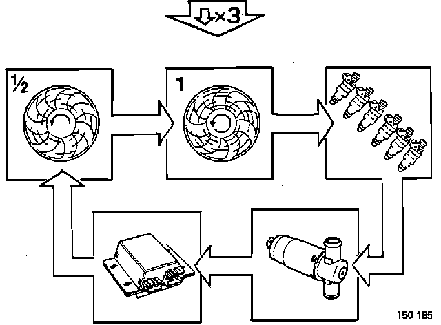 CONTROL FUNCTION 3 is activated by three brief operations of test button A with ignition "ON."