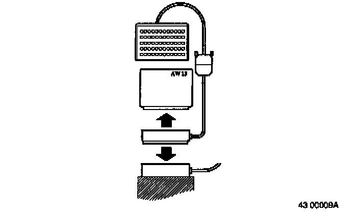 The measuring box (or boxes) and adaptor 9813195 or 9511351 are connected either to the control module connector or to the connector on the control module box. This enables resistance measurements to be carried out in each circuit without influence from other systems.