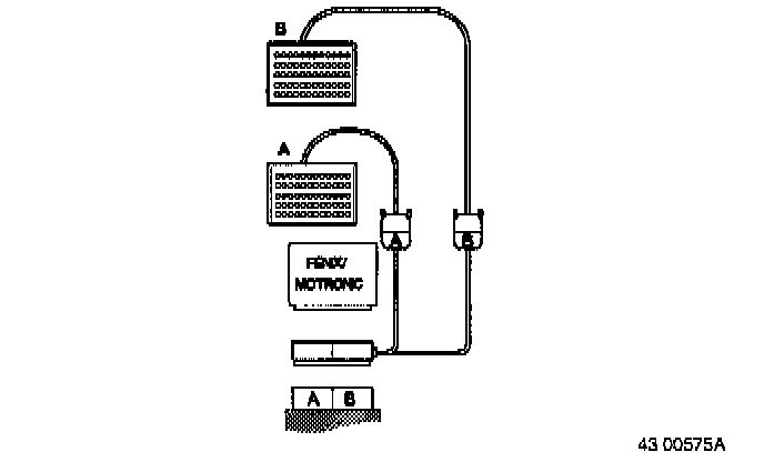 The following applies when connecting the test box to Fenix 5.2 and Motronic 4.3 control systems which are fitted with 43+43 pin connecters (A+B):