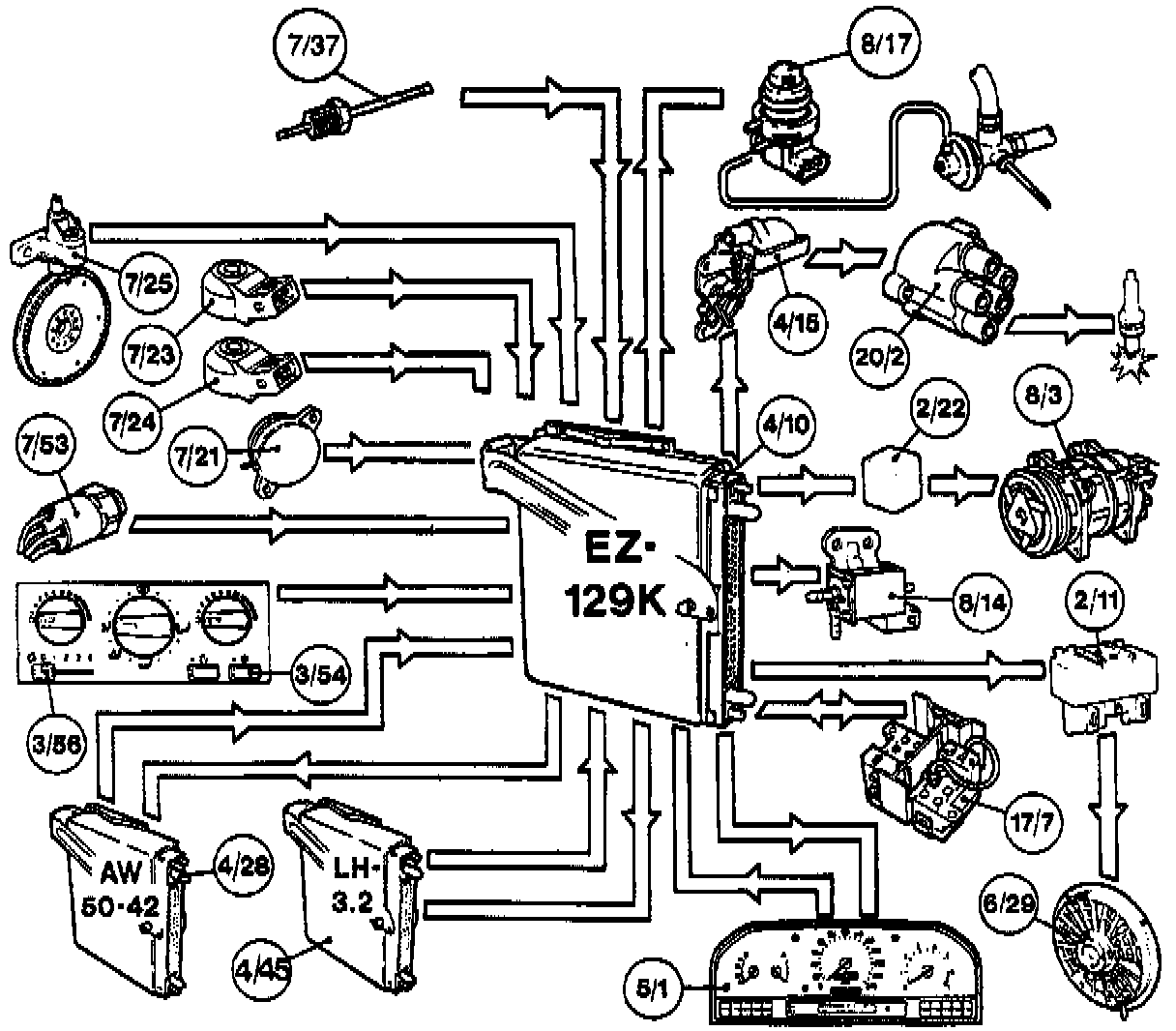 ^ an A/C compressor switch-out function using the A/C relay (2/22). The A/C switch on the control panel (3/54) indicates if the system is on or off.
