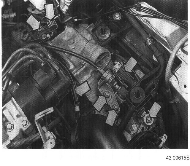 - Cable clamps retaining ground lead/cable harness to the transmission or sub-frame.
