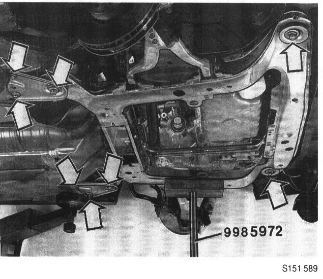Loosen nut to the rear engine mounting cushion.
