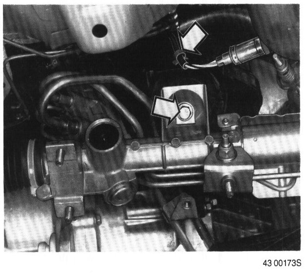 - The two bolts securing torque rod mounting support on transmission.