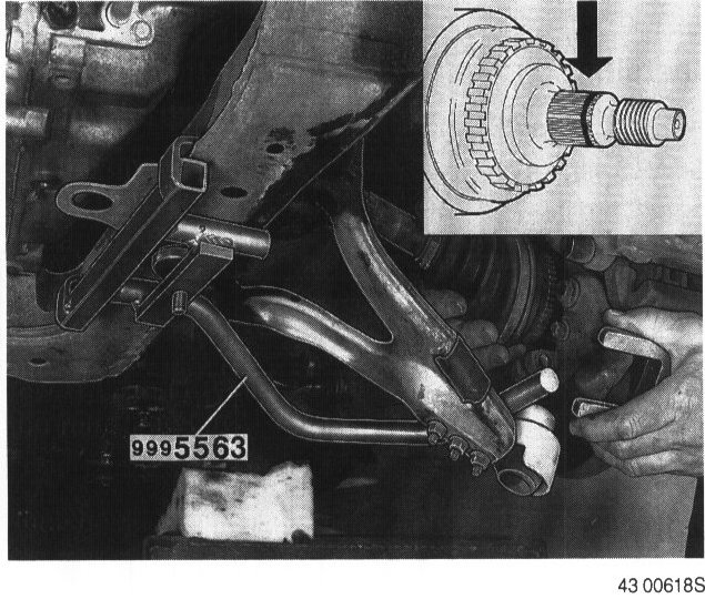 Remove retainer. NOTE! Take care that the drive shaft boot is not damaged.