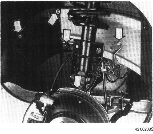 Brake line and ABS cable brackets (both sides). Detach the brackets and let them hang loose.